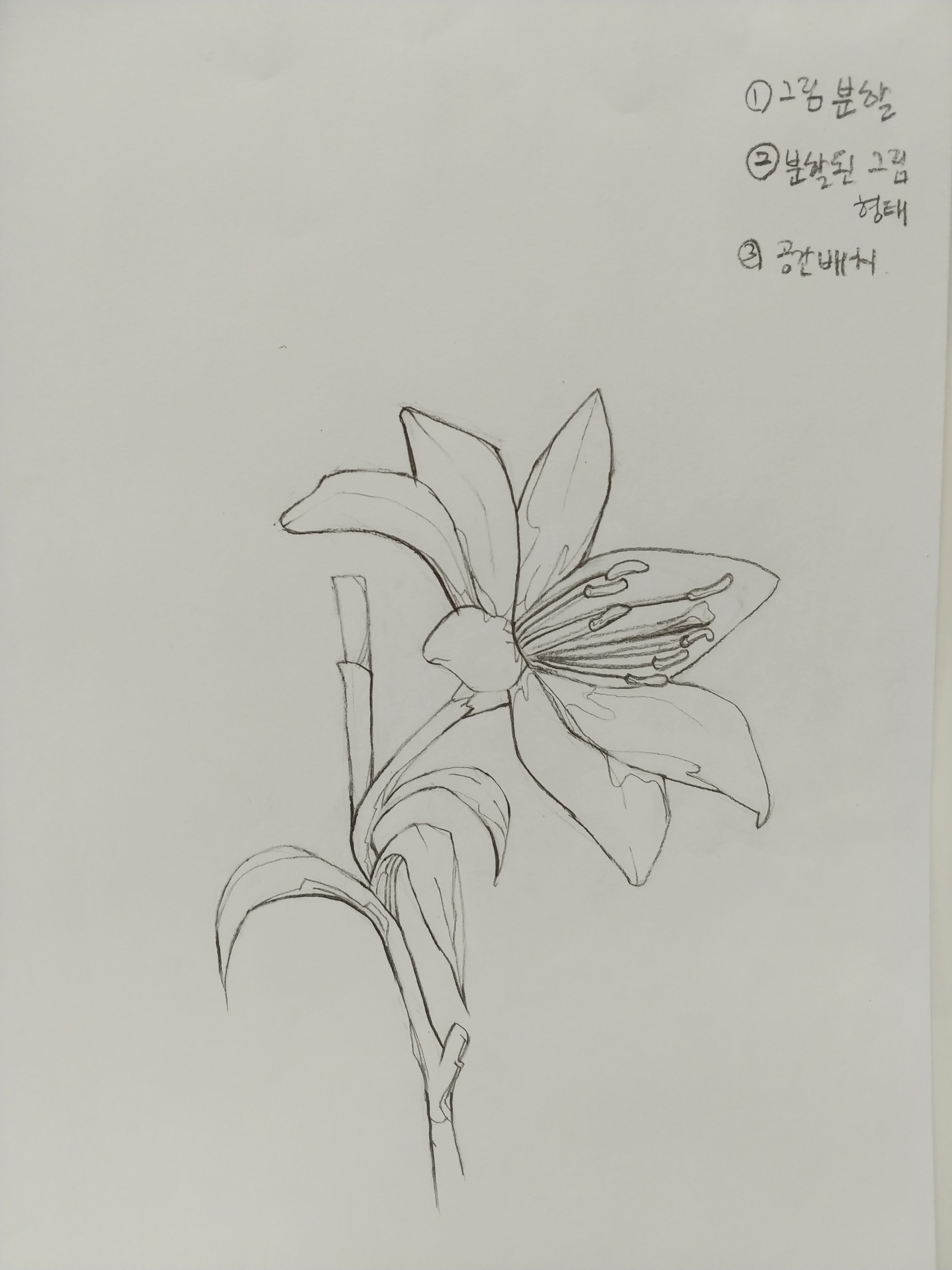 세부선은 연하게 그려서 선의 강약을 표시해 주어요.