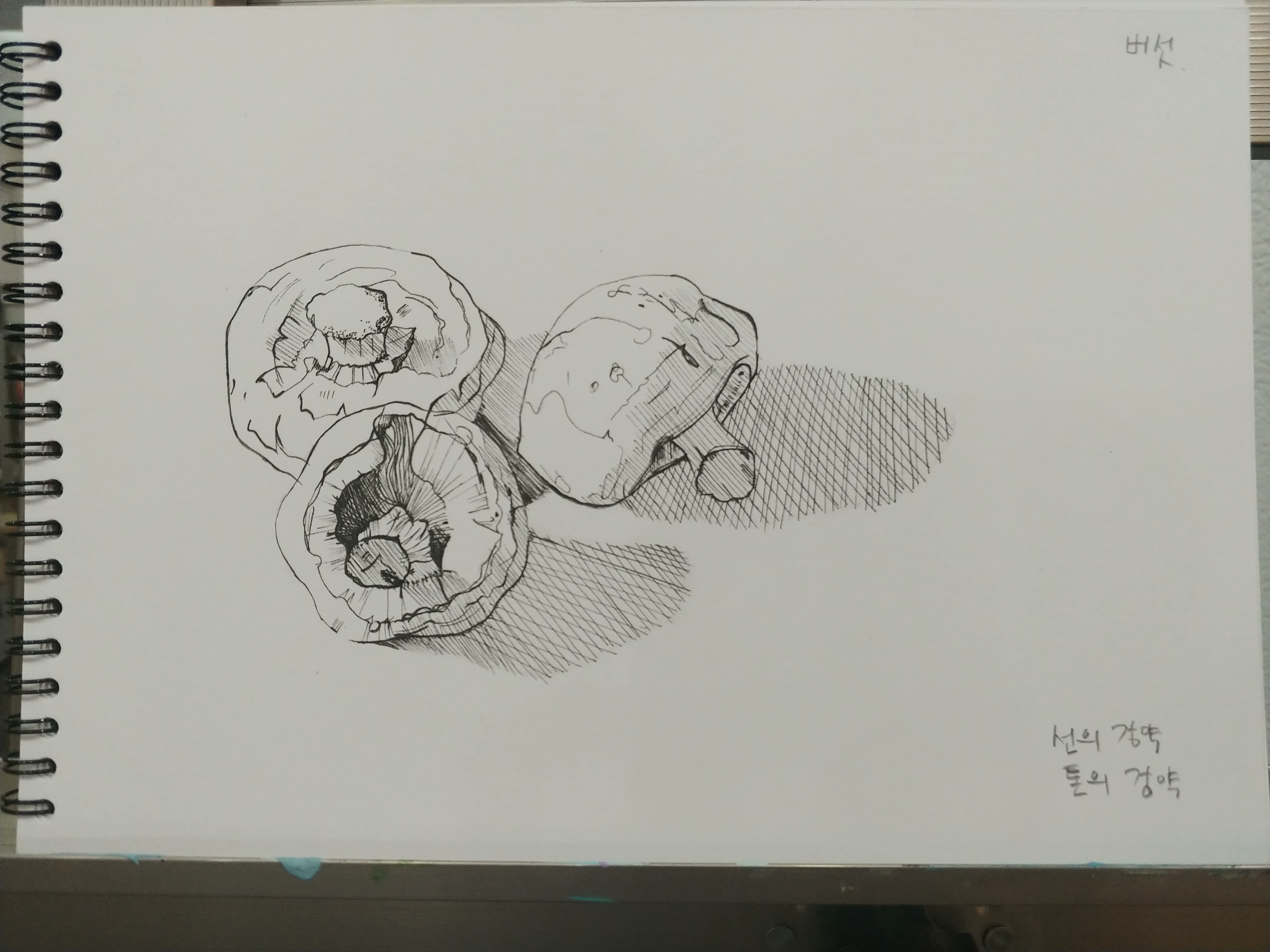 2.펜으로 외곽선 그리는데 강약을 표현하면서 그려요.
