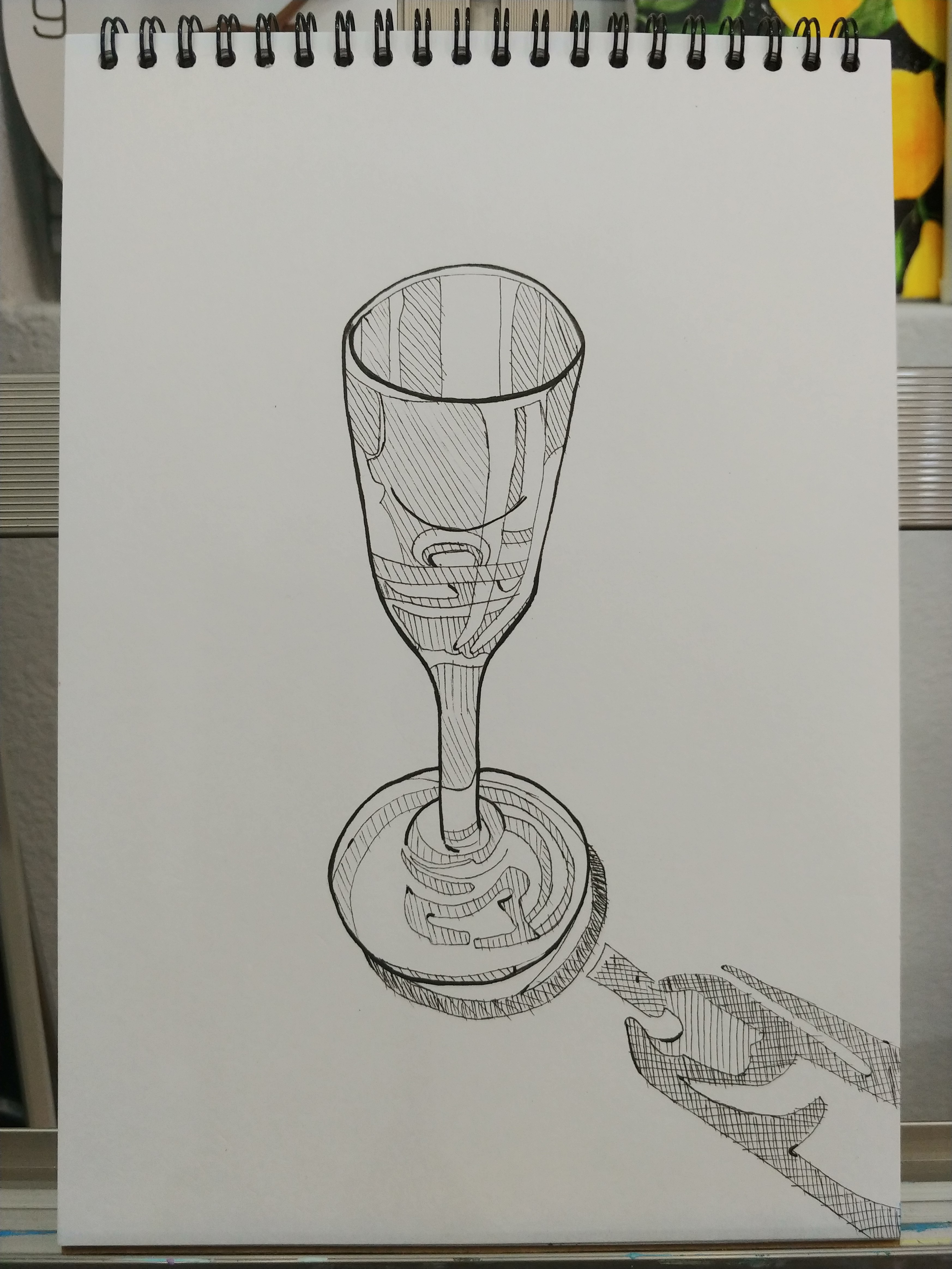 포인트는 유리잔 외곽은 굵은 펜으로, 나머지 세부 표현은 얇은 펜으로 그린다는 거예요.