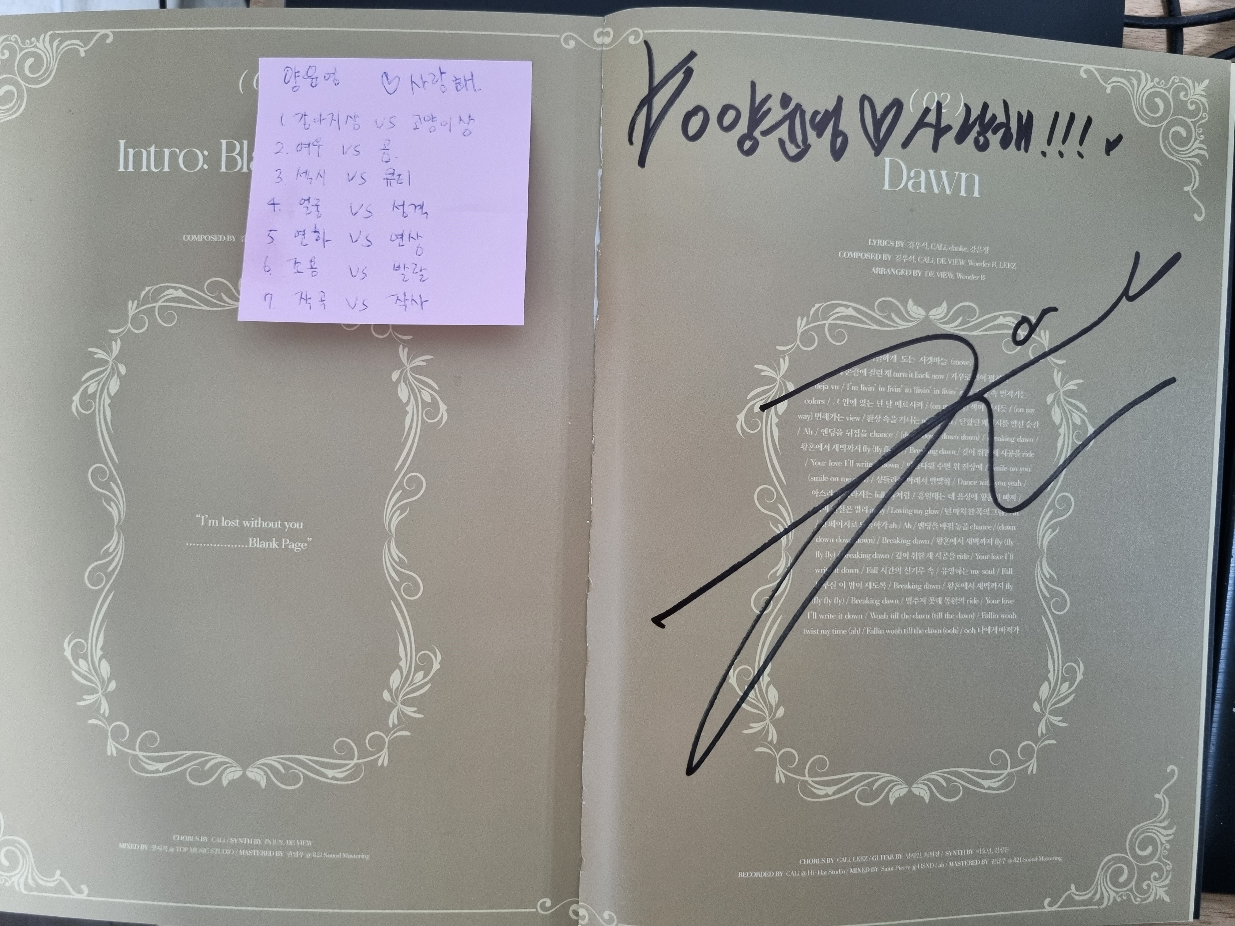 우석이가 "양윤영 사랑해" 라고 말하면서 싸인해줬다. ㅋㅋ