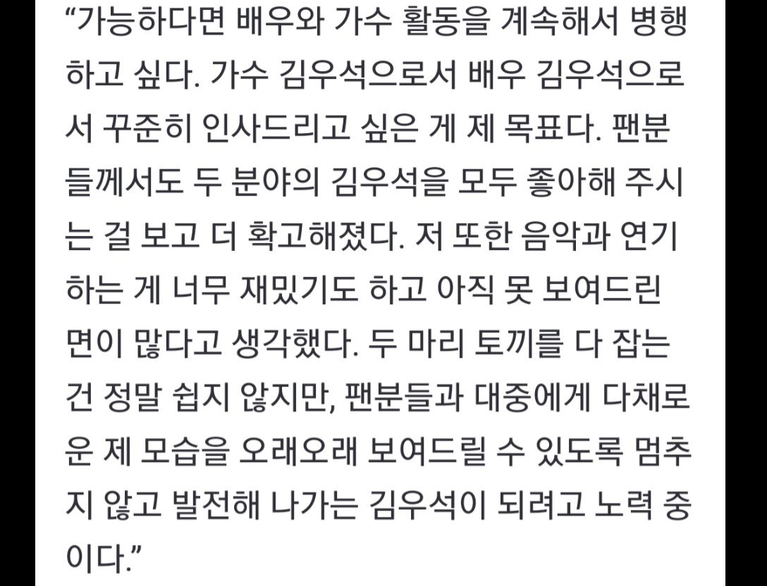 우석이는 음악과 연기 둘 다 재능이 있으니까