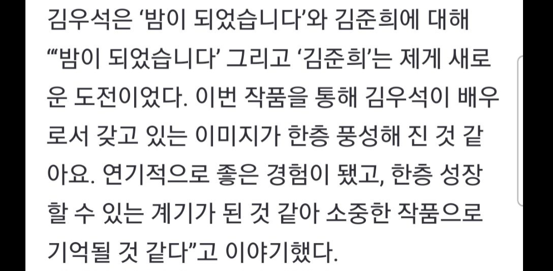 | 밤이 되었습니다 김우석 인터뷰♡ (0) | 2023.12.20 |