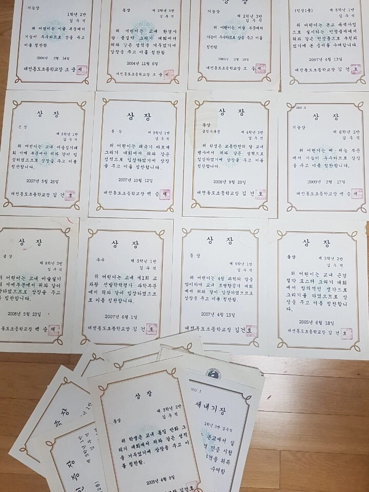 그리고 이것도 발견했는데 우석이 초등학교 때 상장이 수두룩이다.